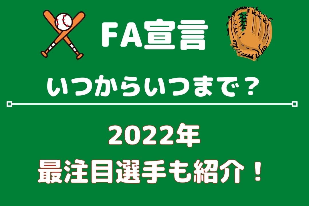 そこでこの記事では、FA宣言についていつからいつまでなのか期間はもちろん、2022年FAとなる目玉選手についても野球歴10年以上の筆者が詳しく紹介をしていきます。